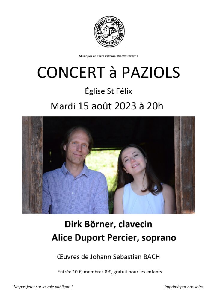 Dirk Börner, clavecin, & Alice Duport Percier, soprano, concert autour d’œuvres de Bach